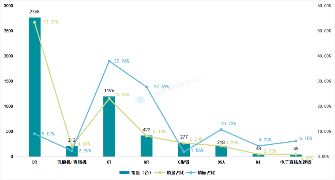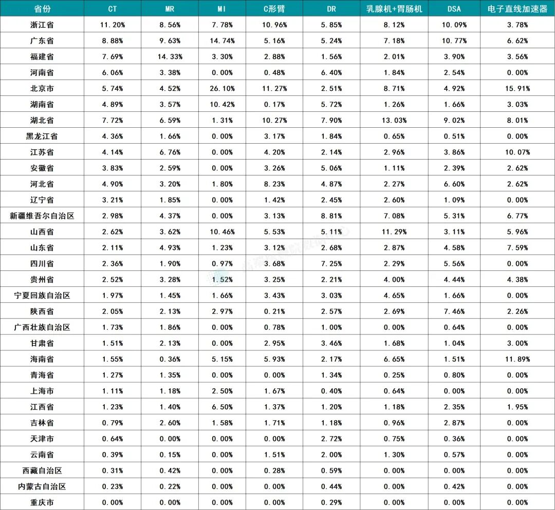 2025年全国医疗器械集采数据的波动,暗藏着行业发展的核心脉络。2025年全国医疗设备集采的铺开速度高于预期,同时集采品类中存在“销量销额错位”现象,部分设备以高销量占据市场份额,却在销售额贡献上处于弱势,而年底集中采购的热潮,更折射出医疗设备市场独特的运行节奏与区域布局差异。从基础设备的普及到高端装备的落地,从采购偏好的区域分化到政策导向的深层影响,这些数据背后是医疗装备领域生态的系统性变革。 一、整体市场 图表1:2025年全国医疗设备集采总体情况 说明:销量占比及销额占比的对比维度为集采与整体 从2025年全国集采总体数据来看,2025医疗器械集采市场呈现“基础设备铺量、高端设备提效”的二元特征。 销量端,DR 以 2768 台、53.37% 的占比成为2025年医疗设备集采绝对主力,CT(1196 台,23.06%)紧随其后,两类影像设备合计销量占比超 76%,直观反映基层医疗机构对基础影像设备的旺盛需求。 销额端则呈现明显分化:CT 以37.96% 的占比成为最大收入来源,MR 27.69%次之,两者合计销额占比超 65%。尽管 CT 销量仅为 DR 的 43%,但销额却是 DR 的 4.2 倍,凸显高端设备“低销量、高单价”的价值属性。 这种销量与销额的背离,既体现集采政策向基层医疗倾斜的普惠导向,也反映核心医疗机构对高端设备的升级需求,或将成为未来设备集采平衡“可及性”与“先进性”的长期结构。 二、时间分布特征 丨品类月度销量对比 图表2:2025年全国集采销量时间分布(单位:台) 从月度销量看,DR在5月、8月、12月出现销量高峰,CT在4月、5月、12月销量显著提升,MR则在4月、8月、12月呈现集中采购趋势。整体来看,第二季度和第四季度是采购活跃期,尤其是4月、5月、8月、12月,这与财政年度预算执行周期、医院采购节奏密切相关。 丨品类月度销额对比 图表3:2025年全国集采销额时间分布 * 说明:该图显示比例为产品单月占全年的比重 销售额分布与销量趋势基本一致,但高单价设备如MR、CT在4月、8月、12月的销售额贡献尤为突出。例如,MR在12月销售额占比达25.17%,CT在12月占比也达到22.92%,显示年底为高端设备采购的高峰期。 丨分季度销量对比 图表4:2025年全国集采分季度销量情况(单位:台) 从分季度销量看,第二季度和第四季度是全年采购的主要阶段。CT在第二季度销量达539台,占全年45.6%;MR在第二、四季度分别销售129台和156台,表现活跃。DR在第二季度销量最高(1074台),第四季度次之(786台)。整体来看,第四季度在多数品类中均为销量和销售额的全年高点,显示年底采购冲量的特点。 丨分季度销额对比 图表5:2025年全国集采分季度销额对比情况 销售额方面,CT、MR、DSA、电子直线加速器等高价设备在第四季度均达到全年峰值,其中CT第四季度销售额最高,MR四季度销额次之,进一步印证了年底采购集中、金额庞大的市场特征。 三、省份参与度 图表6:2025年各省市集采整体情况 从各省市整体集采情况来看,新疆、河南、湖南在销量上位居前三,分别为467台、436台和385台,显示中西部省份在设备数量采购上较为积极。然而从销售额来看,湖北、浙江、福建、广东 等东部省份排名靠前,其中湖北省居首,浙江省紧随其后,说明这些地区更倾向于采购高单价设备。 丨各省市品类销量结构 图表7:2025年各省市集采分品类销量情况(单位:台) 从各省市分品类销量看,DR 在几乎所有省份均有较高销量,尤其在新疆、河南、湖北等地销量突出,反映其作为基础设备的广泛配置需求。CT 和 MR 则更多集中在浙江、广东、福建、北京等经济发达地区,显示高端影像设备配置与地区经济水平、医疗资源投入正相关。DSA 和 电子直线加速器 在广东、浙江、北京等地也有较好表现,说明这些地区在介入与肿瘤治疗设备上投入较大。 丨各省市品类销额贡献 图表8:2025年各省市集采分品类销额情况 2025年上半年,浙江、广东、福建 在集采销售额上位居前三,其中浙江省在CT、MR、DSA等多个品类中均表现突出,广东省在MR、MI(医学影像)等领域销售强劲。北京市虽然在销量上未进前十,但因采购高单价设备(如电子直线加速器、MR等),销售额仍处于前列,体现其作为医疗高地的采购特点。 四、政策趋势 医疗设备集中带量采购已从初期的“降价利器”演变为驱动行业生态系统性变革的核心政策力量。其影响已深度融入市场运行的各个环节,成为理解前述市场数据表现不可或缺的政策背景。 近年来,在国家推动高端医疗装备自主可控和“千县工程”等基层能力建设政策的引导下,国产替代进程在集采市场持续加速。这一趋势在数据上得到直接印证:河南省的CT集中采购中,多家国产厂商包揽全部148台订单,其中16排CT单价已击穿60万元人民币。这反映出国产设备凭借“高性价比+易维保”的特点,正成为满足基层医疗机构“用得起、用得好”需求的主力军,并逐步从基层市场向更高端领域拓展。 为规范市场秩序,财政部于2025年7月施行了新规,对政府采购活动中自欧盟进口的医疗器械采取限制措施。该政策规定,预算金额达到4500万元人民币以上的医疗器械政府采购项目,原则上将排除欧盟企业直接参与;若非欧盟企业参与,其提供的自欧盟进口医疗器械金额占比也不得超过合同总金额的50%。此项政策主要针对大型、高价值的政府采购项目,直接影响CT、MR、DSA等高价设备的市场格局。 这些特征共同表明,全国医疗器械集