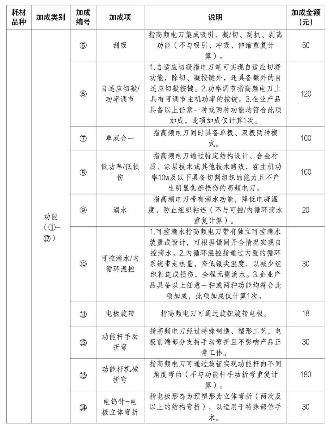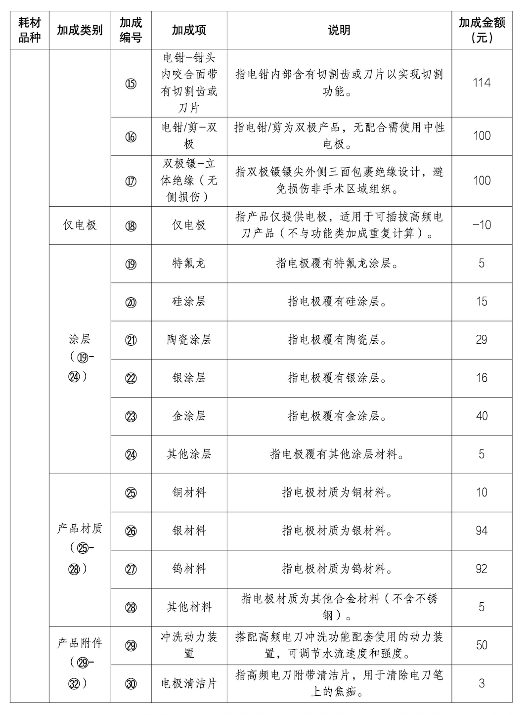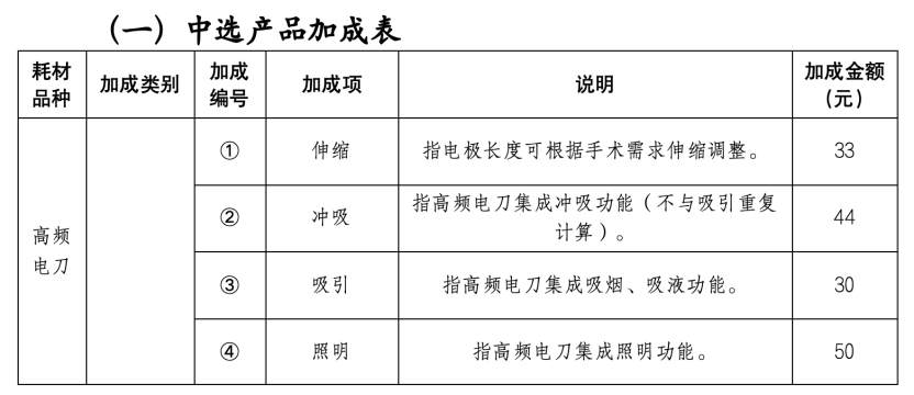 作者 | 东台 来源 | 赛柏蓝器械 创新加成机制,集采规则更趋精细化。 01高频电刀、中性电极 近日,湖南医保局发布《关于公示高频电刀、中性电极类医用耗材省际联盟(湖南)集中带量采购拟中选结果的通知》,公示时间截至2026年1月9日17:00。 此次集采由湖南省牵头,联盟成员包括北京、天津、河北、山西、内蒙古、辽宁、吉林、黑龙江、上海、浙江、安徽、福建、江西、河南、湖北、广西、海南、重庆、四川、贵州、云南、西藏、陕西、甘肃、青海、宁夏、新疆、新疆生产建设兵团。 这也是高频电刀、中性电极类医用耗材首次纳入大规模联盟集采。 集采涉及产品采购需求总量超2000万把(片),总金额超35亿元,共吸引了国内外184家生产企业参与,182家企业现场报价成功,初步测算中选率约80%左右。据官方披露,集采中选结果预计2026年上半年正式执行。 此前,我国高频电刀和中性电极类耗材市场长期由美敦力、爱尔博等外资企业主导。数据显示,美敦力、强生、贝朗等品牌占据全球高频电刀高端市场60%份额,在三级医院及复杂手术领域优势明显。2023年,美敦力在中国高端市场占有率超50%,爱尔博在消化内镜细分领域市占率达95%。 近年来,国产高频电刀企业不断追击。此次高频电刀集采有望助力医院神经外科、整形外科、甲状腺外科、乳腺外科等多个科室手术的向微创化、精准化和高效化升级。同时,国产品牌有望加速进院。 02报价加成机制来了 高频电刀是基础电外科器械,但不同科室、不同术式对电刀的性能要求差异显著,产品形态差异大、功能差异大、价格跨度大。 与以往集采相比,此次集采规则设计突出了“质量优先、创新激励”。 其中采用“商品价值(基础价)+创新价值(加成)”的双维度报价模式,按照不同特殊功能、涂层、产品材质、产品附件等共计35项进行加成调节。例如自适应切凝/功率调节加成金额为120元,功能杆机械折弯加成金额为180元,单极双极合一、低功率/低损伤、电钳/剪-双极、双极镊-立体绝缘(无侧损伤)等功能加成金额为100元。 这一创新设计既保障了产品基础价值对应的合理利润,又为具备技术创新的产品提供了溢价空间。 此外,集采还配套了A/B分组竞价、阶梯式复活、价格纠偏等举措,体现出当前集采“稳临床、保质量、防围标、反内卷” 的原则。 (截图自带量采购文件) 综合来看,近期的耗材集采实践中已较为清晰地反映出规则优化的特征。例如,第六批耗材国采、广西牵头中医针具类耗材集采、黑龙江牵头腔静脉滤器和消融电极集采等诸多大型集采中,均明确了可二次或多次报价的规则。 中泰证券研报认为,预计未来耗材集采带来的价格降幅将逐步温和且可预期。 03,2026耗材降价继续 近期,耗材集采动作密集。 1月5日,天津市医药采购中心发布《关于京津冀“3+N”联盟医用胶片类医用耗材带量联动采购项目产品供应意向确认工作的通知》《关于京津冀“3+N”联盟止血材料类医用耗材带量联动采购项目产品供应意向确认工作的通知》,将于1月6日—1月8日17时开展产品供应意向确认工作。 12月31日,中医针具联盟集采拟中选结果公布。这一集采联盟汇聚了超25亿支的采购需求量,其规模效应直接覆盖全国超70%的中医药服务消费市场。据广西日报报道,中选结果预计将于2026年上半年起正式执行。 此外,去年冠脉介入球囊、缝合线、注射器(带针)、泵用输液器、吸氧管、真空采血管(含静脉血样采集针)、结构心脏病封堵器、输尿管支架等多个重磅联盟集采项目推进。 新项目方面,江西表示,2026年将积极参与国家组织和兄弟省市牵头开展的新批次药品医用耗材集采,重点牵头开展未过评药品和导管导丝省际联盟集采接续,探索开展干性生化类检测试纸全国联采。 伴随相关集采的落地,预计2026年相关产品将有新一轮价格调整。 |