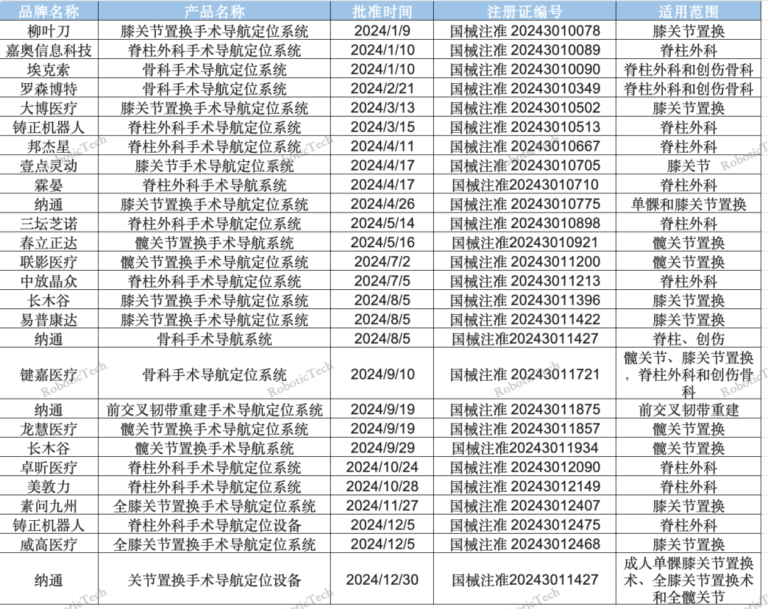2024年骨科机器人新拿注册证汇总