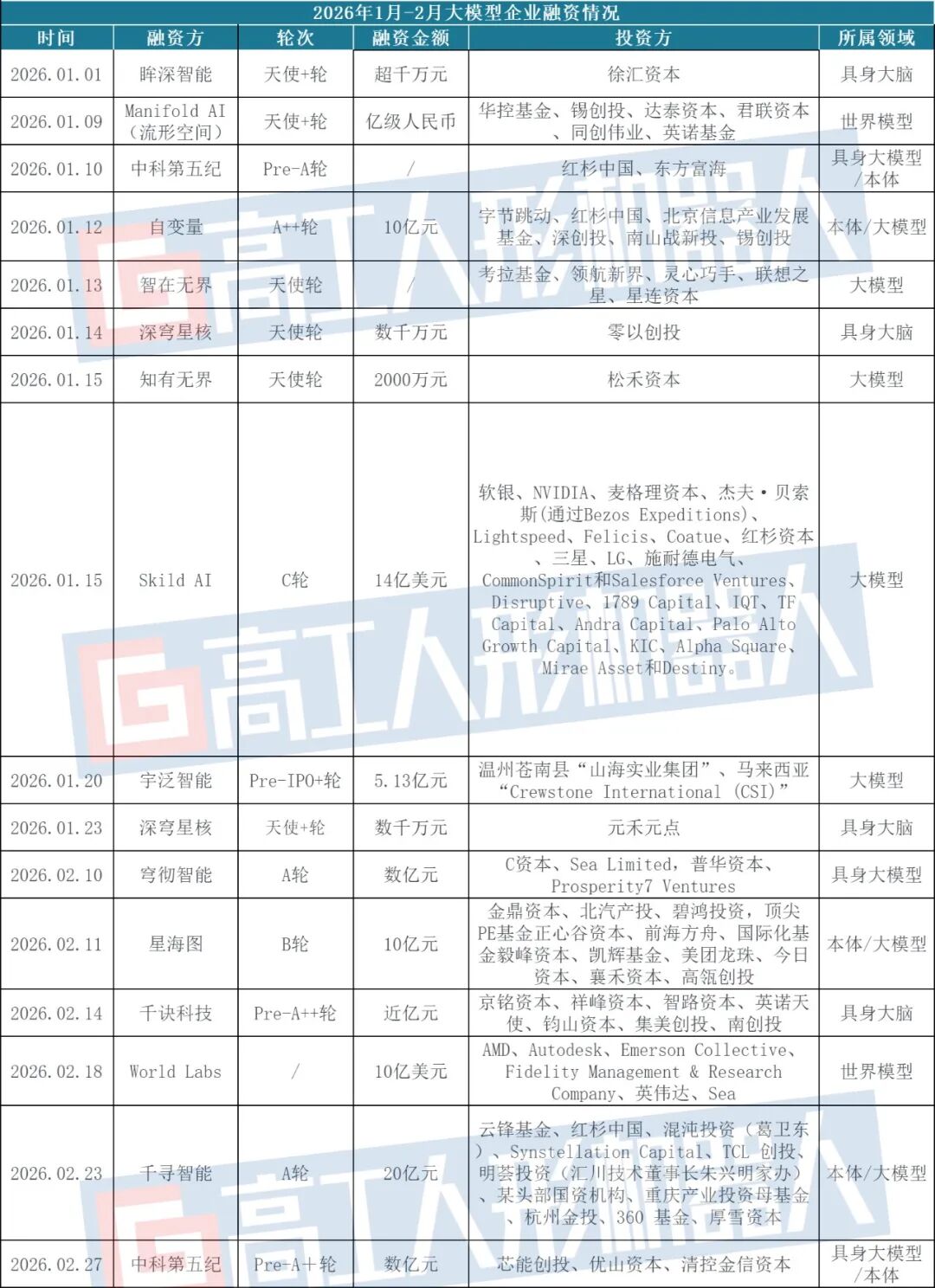 进入2026年,这一纪录仅用两个月便被打破。更值得关注的是,年内已出现3起高达20亿元,以及1起高达25亿的单笔融资。