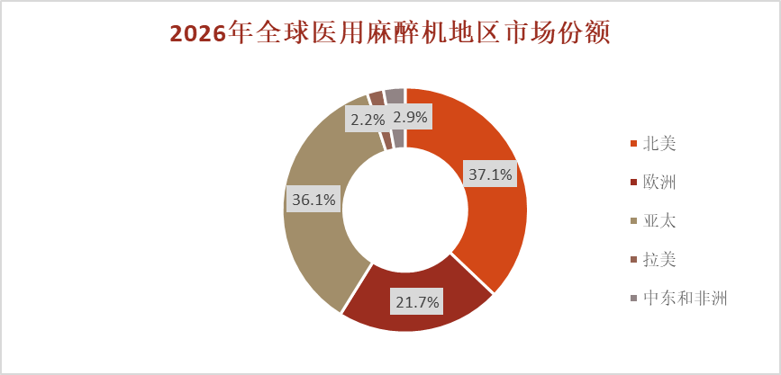 根据问可汇(WENKH)深度研究分析,北美以 37.1%的份额位居第一,是全球最大的单一市场。这一领先格局的形成,北美地区从诊疗流程规范到医疗资源配置,均处于全球前列水平,为麻醉机的临床应用提供了坚实的基础保障。同时,当地稳定且较高的手术诊疗需求,直接拉动了对麻醉机的刚性需求,加之医疗领域对高端、精准医疗设备的持续追求,使得具备先进功能、适配复杂手术场景的麻醉机产品在该区域拥有强劲的市场号召力,进一步巩固了其市场领先优势。亚太地区紧随北美之后,以 36.1% 的份额成为第二大市场,同时也是当前全球范围内增长活力最充沛、潜力最大的区域。该区域市场的快速增长,主要依托于中国、印度等核心国家医疗健康产业的快速发展。这些国家正持续推进医疗基础设施的升级改造,不断完善各级医疗机构的诊疗设备配置,填补基层医疗设备缺口;伴随人口增长、老龄化加剧以及居民健康意识的提升,各类手术诊疗需求持续攀升,直接带动了麻醉机的市场需求扩容。欧洲市场稳健发展,占比 21.7%。该区域拥有完善的医疗保障体系,各国对居民医疗健康的投入持续稳定,为医疗设备市场的良性发展提供了有力支撑。同时,欧洲医疗领域对手术安全的重视程度极高,在手术诊疗的全流程中,对麻醉环节的安全性、规范性有着严格的标准和要求,这也使得具备可靠性能、符合严苛安全标准的麻醉机产品始终拥有稳定的市场需求,推动区域市场长期保持平稳发展节奏,未出现大幅波动。拉美、中东和非洲市场占比较小,整体市场规模处于较低水平。从当前市场现状来看,这些区域受经济发展水平、医疗基础设施建设进度等因素影响,医疗资源配置相对不均衡,基层医疗服务覆盖范围有限,导致对麻醉机等医疗设备的即时需求相对有限。不过,随着近年来这些区域各国政府对医疗健康领域投入的逐步增加,医疗基础设施建设不断推进,基层医疗服务的普及程度持续提升,居民对优质医疗资源的可及性不断提高,各类手术诊疗需求也将逐步释放,因此从长期发展视角来看,这些区域的医用麻醉机市场同样具备一定的增长空间,未来有望逐步实现市场规模的扩容。