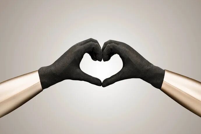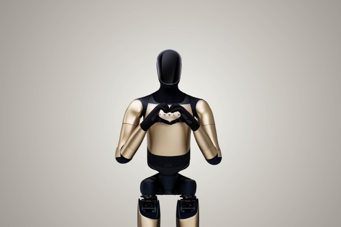 照片中,Optimus的灵巧手脱去了金属质感,取而代之的是针织面料的“手套“,五指轻盈捏合,自然微曲,在指尖相触的瞬间,恰好勾勒出一个完美的心形轮廓。冰冷冷的机器人,反而透出一丝奇异的温度。