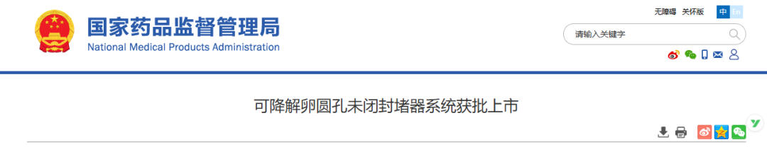 近日,NMPA官网显示,国家药品监督管理局批准了多个创新产品注册申请 批准了无忧跳动医疗科技(深圳)有限公司可降解卵圆孔未闭封堵器系统创新产品注册申请。