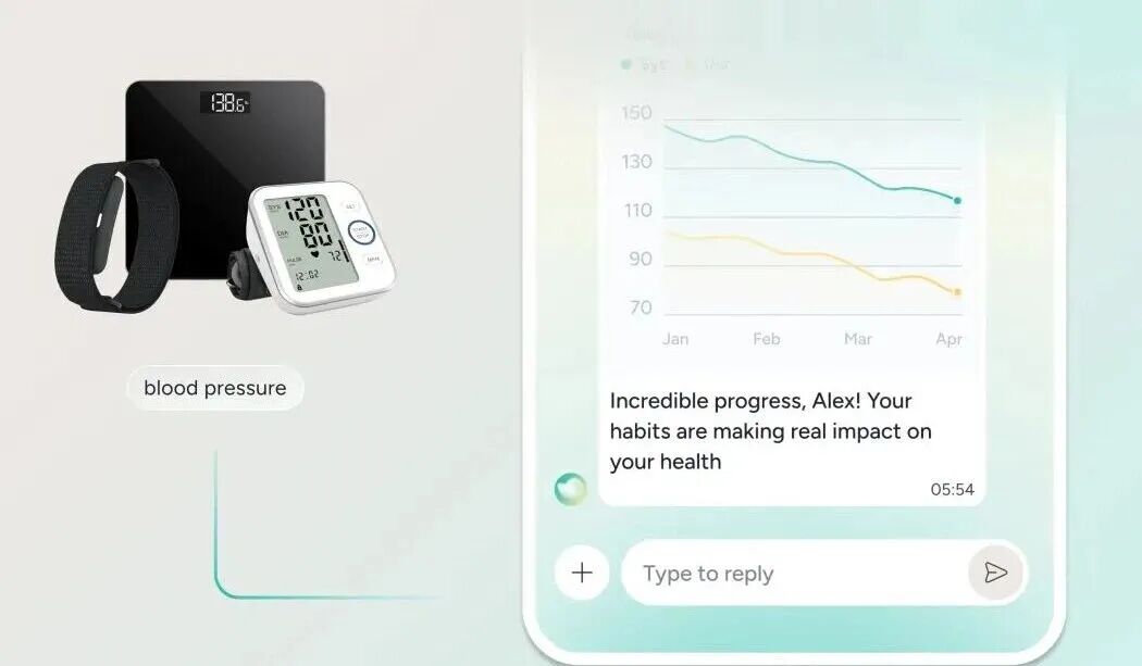 Sword Health推出的Pulse方案试图从底层逻辑上改变这一现状。其核心思路是构建一个由患者、医生和AI护理专家组成的三方协作系统:通过无缝对接智能血压计、智能秤和可穿戴设备,系统能够自动采集和处理生理数据;AI则基于这些非侵入式的设备数据,全天候与用户进行自然语言交流,推送针对性的运动、睡眠及营养指导。这不是被动等待用户查看报告的“仪表盘”,而是主动跟进、实时响应的“健康教练”。