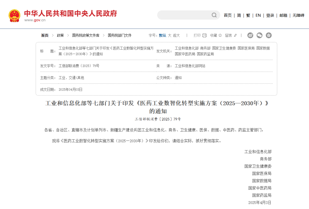 2025年4月,工信部、国家卫健委等七部门联合发布《医药工业数智化转型实施方案(2025—2030年)》,提出到2027年建设10个以上医药大模型创新平台,打造100个以上医药工业数智技术应用典型场景。同年12月,八部门又联合印发《“人工智能+制造”专项行动实施意见》,将“提升医药智慧研发”明确为AI赋能的重点攻坚领域。 地方层面,江苏、广西等地相继出台“人工智能+”行动方案。江苏省提出推动人工智能在药物靶标筛选、药物分子设计等场景中的推广应用;广西则明确加快建设“AI+天然药物”等标杆级应用平台。