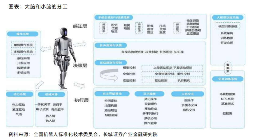 大脑(感知-规划),负责人机交互工作,并统筹完成任务的接收、理解、决策与规划全流程;大模型具体落地上述核心环节,实现任务接收、需求理解、行动决策,以及对任务的规划与步骤分解。