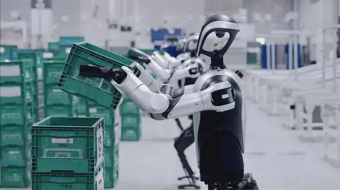 更令人惊叹的是这条产线的生产效率。据悉,产线可实现每30分钟下线一台人形机器人。换句话说,只需喝完一杯咖啡的功夫,一台具备完整运动能力和初步智能的“数字生命”便诞生了。 这种效率,是传统人工装配模式的飞跃式提升,它为人形机器人的市场批量交付提供了最关键的产能支撑。 从技术架构来看,这条产线的精妙之处在于柔性化弹性设计。产线采用了模块化结构,可以灵活调整工位,支持多型号产品的混线生产。在智能仓储与AGV自动配送系统的配合下,整个工厂就像是一个有机的生命体,能够根据需求进行调节,大幅提升了运营效率。