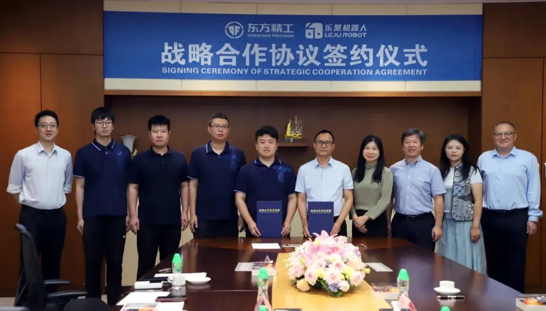 ▍从战略签约到产线落地 这条年产万台级产线的启用,绝非一日之功。其背后,是东方精工与乐聚机器人近一年来的战略合作与深度磨合。 2025年7月,东方精工与乐聚机器人正式签署了《战略合作协议》。 双方本着友好合作、互利互惠、共同发展的原则,基于各自在机器人核心技术与智能装备制造等领域的核心优势,建立战略合作伙伴关系,聚焦具身智能机器人方向,在生产制造、场景拓展、业务推广等方面开展战略合作。
