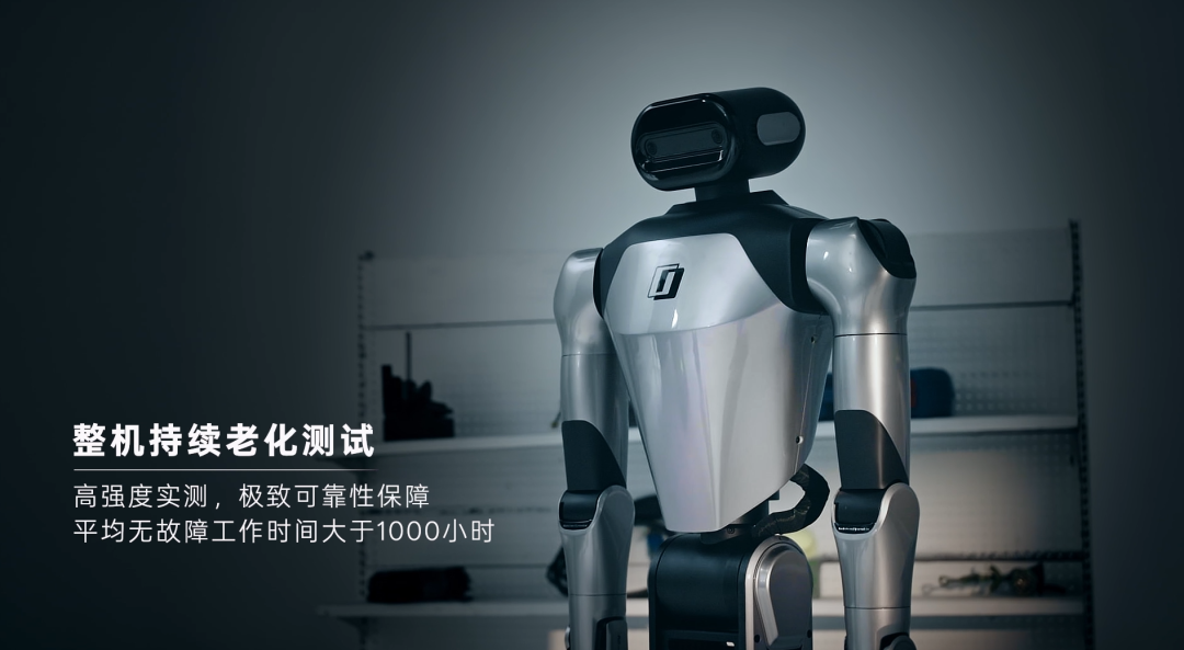 R1系列2026在整机可靠性上全面向工业级标准看齐。整机老化测试MTBF(平均无故障工作时间)超过1000小时;60度高温测试等效室温运行8500小时;整机震动测试通过48小时2Grms高频振动;线束寿命支持躯干10万次折弯、机械臂40万次极限折弯。