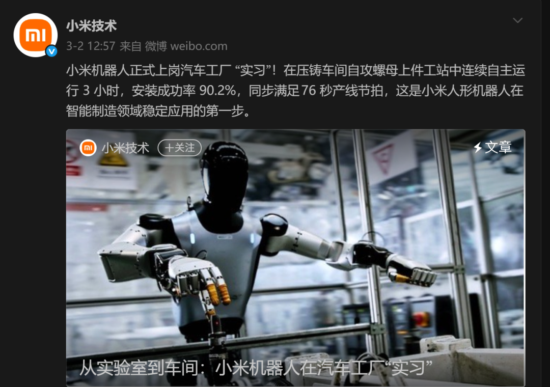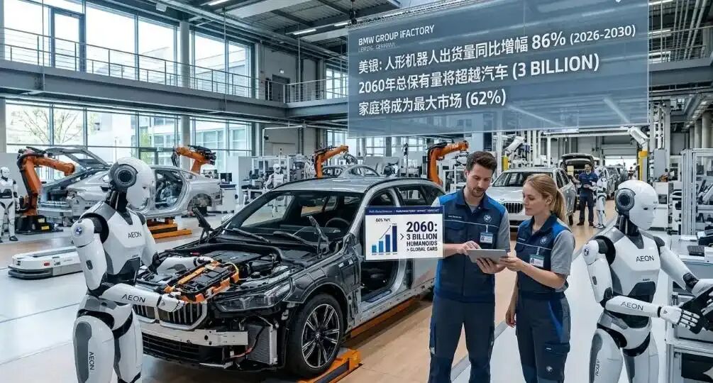 人形机器人已然成为当下科技界最耀眼的“顶流”。春晚舞台上各家人形机器人灵动惊艳的集体亮相引发全民惊叹与文化破圈;两会上,众多代表委员密集提交相关议案,将其上升为国家战略层面的关注焦点。从大众视野的“新宠”到国家发展的“重点”,人形机器人的热度正在持续升温。人形机器人的热度也引得各路玩家纷纷下场。在造车赛道没能分出胜负的车企们,凭借智能驾驶技术积淀、成熟供应链体系与制造场景优势,纷纷布局人形机器人领域,成为这一赛道的主力军。车企纷纷跨界入局人形机器人赛道,其背后的战略意图与发展路径究竟何在?人形机器人的规模化落地,又将对汽车行业乃至全领域的维保人员、产业工人带来哪些颠覆性影响与职业变革?马斯克特斯拉人形机器人Optimus 3将在今年夏天进入生产阶段;小鹏汽车新一代IRON机器人将在年底启动量产;比亚迪“尧舜禹”项目计划2026年完成2万台内部自用,2028年大规模落地;现代汽车计划2028年将波士顿动力的新一代Atlas人形机器人部署电动汽车智造工厂……随着全球人口老龄化进程不断加速,人类对于机器人技术的需求正从科幻走向刚需。以中国为例,老龄化已成为社会发展的重大挑战。根据国家统计局数据,中国65岁及以上人口占比已从2018年的11.9%持续攀升至2024年的15.6%,预计到2035年将突破30%。劳动力成本持续攀升,人力缺口日益凸显。在这一背景下,机器人已不再是未来的选项,而是应对社会变迁、填补服务空白的迫切需求。美国银行(Bank of America)全球研究部在近日发布的一份深度报告中指出,人形机器人市场正处于爆发前夜。据其预测,未来五年内该行业的出货量复合年增长率(CAGR)将高达86%,其扩张速度甚至将超越早期电动汽车市场的爆发曲线。到2060年,全球人形机器人的总保有量预计将达到30亿台。而在人形机器人这一未来产业上,车企们有着天然的优势。在硬件层面,人形机器人的关键部件如传感器、芯片、电机、电池等,恰恰是车企深耕多年、已形成规模化与成本优势的领域;在感知层面,智能网联汽车的自动驾驶和人形机器人都依赖于计算机视觉、多传感器融合等核心技术;在决策与规划层面,车企在自动驾驶领域积累的海量数据、训练成熟的AI大模型以及复杂的算法架构,都可以无缝迁移并赋能于人形机器人的研发。例如,特斯拉将其FSD(完全自动驾驶)系统中的神经网络规划技术迁移至Optimus,使其能够自主导航和避障。这种软硬件双链条的深度复用,极大地缩短了研发周期、降低了试错成本,成为车企入场人形机器人赛道的天然优势。机器人取代人类是科幻小说、电影经常出现的场景。但如今,这样的场面不再是仅存在于科幻电影中的想象了,人形机器人已经实实在在地走进了汽车工厂,开始承担具体的生产任务。小米的自研人形机器人已在北京亦庄的小米汽车工厂正式“上岗实习”。在压铸车间的自攻螺母安装工位上,它成功完成了连续3小时的无人干预自主作业。小鹏汽车的进展同样迅速。其人形机器人IRON不仅在自有工厂的“P+生产线”上承担分拣、搬运、质检等工序,还走出车间,在门店中担任导览和导购员,展现了其跨场景的应用潜力。在美国斯帕坦堡工厂,宝马与Figure AI合作部署的Figure 02机器人,在长达十个月的试运行中表现卓越。它主要负责为焊接工序精准取放金属板,这项工作要求极高的速度与精度。最终,Figure 02累计协助生产了超过3万辆宝马X3,搬运了超过9万个部件。此外,宝马还在其德国莱比锡工厂启动了与瑞典Hexagon公司AEON机器人的试点项目,用于高压电池装配等关键环节。人形机器人的演进速度令人惊叹。随着人工智能大模型、具身智能算法以及硬件技术的发展,“黑灯工厂”——即全流程无人化、关灯生产的智能制造典范,似乎已触手可及。人们不禁畅想:人形机器人全面取代人类工人、实现完全自动化的未来,或许真的指日可待。然而,在这股热潮背后,我们必须清醒地认识到:人形机器人真正走入工厂、构建完全无人的“黑灯工厂”,仍面临诸多尚未攻克的挑战。人形机器人为什么要做成人形?核心在于希望机器人能够以同一种形态胜任多样化的任务。这种通用型机器人的构建与制造成本相对较低,效率更高。在此背景下,若要探讨何种形态最具通用性,一个自然的答案是采用人形设计。因为当前各行业的场景布置和工具操控,都是基于人类形态而设计的。不过纵观当前车企的布局实践,我们不难发现,现阶段人形机器人在工业制造领域的角色仍显单一,它们主要承担拧螺丝、搬运零件、物料分拣等结构化程度高、重复性强且技术门槛较低的基础工序。这表明,尽管人形机器人已正式“上岗”,想要完全取代人类工人,还有很长的路要走。首先,当前人形机器人在数据收集与学习层面仍存在显著盲区,触觉数据的缺失尤为致命。目前人形机器人的感知体系高度依赖视觉数据,其背后是大模型、深度学习与海量图像标注技术的支撑。然而,这种对视觉的单一依赖存在显著的物理局限:人类灵巧操作中所必需的关键物理属性——包括力、材质、顺应性以及内部张力是纯视觉信号根本无法捕捉的盲点。人类手部的灵巧操作广泛依赖于触觉与力觉的实时反馈与全身感知系统的协同。诚然人形机器人装备了诸多传感器,然而触觉的本质远超简单的“局部压力传感”