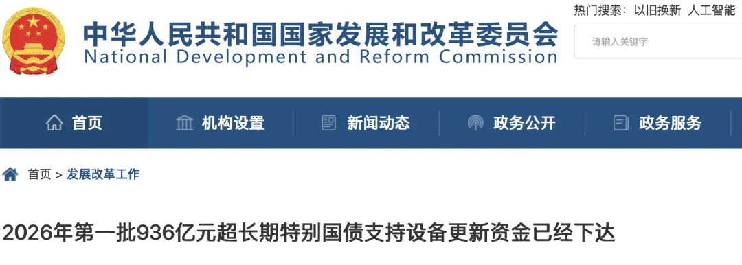 据国家发改委1月22日消息,近日,2026年第一批936亿元超长期特别国债支持设备更新资金已经下达,支持工业、能源电力、教育、医疗、粮油加工、海关查验、住宅老旧电梯、节能降碳环保、回收循环利用等领域约4500个项目,带动总投资超过4600亿元;同时,采取直接向地方下达资金的方式,继续支持老旧营运货车报废更新、新能源城市公交车更新、老旧农机报废更新。 据国家发改委披露,今年以来,国家发展改革委认真贯彻落实党中央、国务院决策部署,会同各有关方面优化实施“两新”政策,在前期扎实开展设备更新项目谋划储备的基础上,抓紧组织项目申报,严格做好审核把关,加快推动设备更新政策落地见效。 下一步,国家发展改革委将会同各有关方面,持续做好统筹协调和跟踪调度,加强设备更新项目和资金全链条管理,扎实推进项目建设,加快提升资金使用效率,进一步发挥“两新”政策效能。 1月20日召开的国新办新闻发布会上披露,2025年安排超长期特别国债资金支持大概有8400个设备更新项目,带动总投资超过1万亿元,支撑全年设备工器具购置投资同比增长11.8%,拉动全部投资增长1.8个百分点。 接下来,在设备更新方面:一是降门槛。进一步降低申报项目的投资门槛,加大对中小企业的支持力度,扩大政策惠及面。二是严把关。细化完善各领域项目条件和审核标准,提高项目审核把关质量。规范设备折旧和淘汰处置,避免资源浪费。三是强监管。完善设备更新项目的闭环管理制度,压实各方管理责任。加强日常调度和监督抽查,加快项目建设实施,提高资金使用效率。 1月19日,财政部还发布了《关于优化实施设备更新贷款财政贴息政策的通知》。其中明确,扩大支持范围。经营主体实施设备更新行动且银行向其发放贷款的,中央财政对经营主体的设备更新项目相关固定资产贷款本金贴息1.5个百分点,按照相关固定资产贷款发放之日起予以贴息,贴息期限不超过2年。 此外,将科技创新和技术改造再贷款政策支持的、银行2026年起新发放的科技创新类贷款纳入中央财政贴息支持范围。政策实施至2026年12月31日,后续可视情延长实施期限。 ▲文章来源:国家发改委、财政部、中国政府网 ▲转载请标注以上来源 |