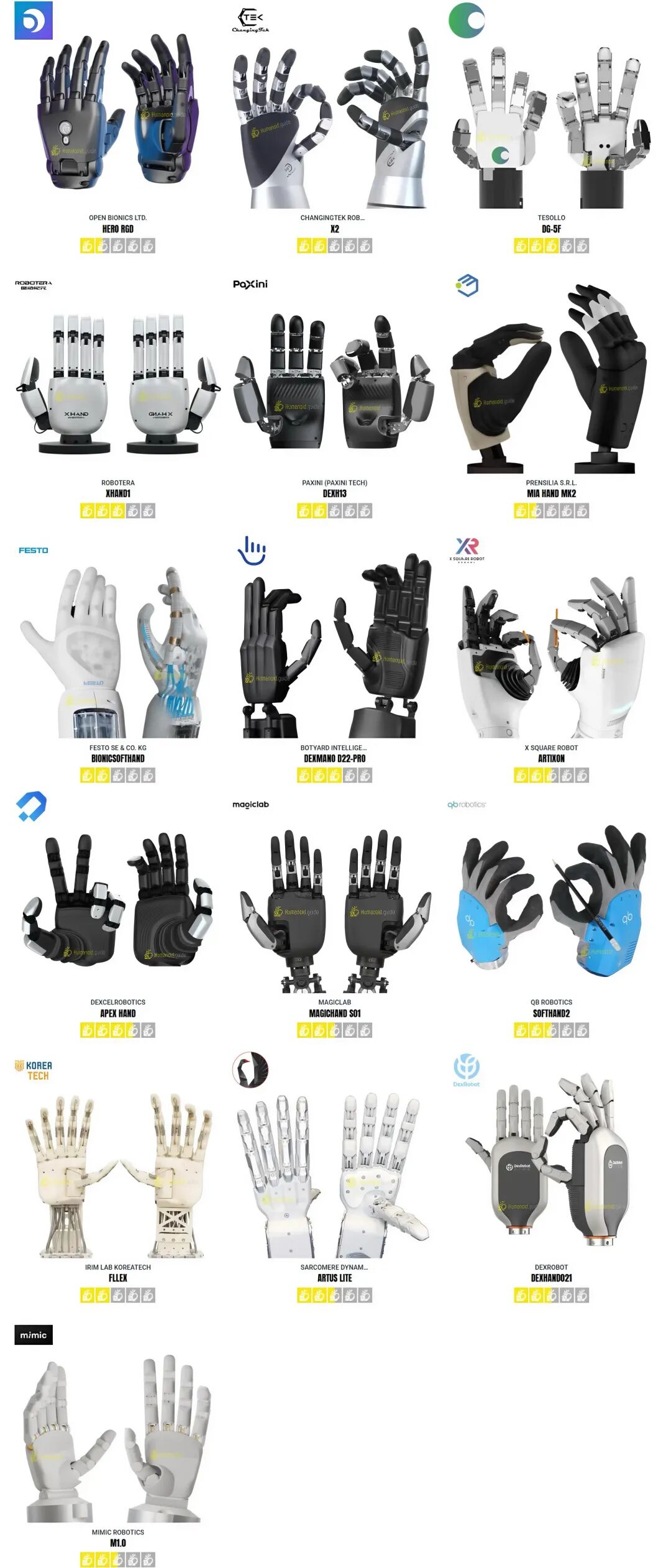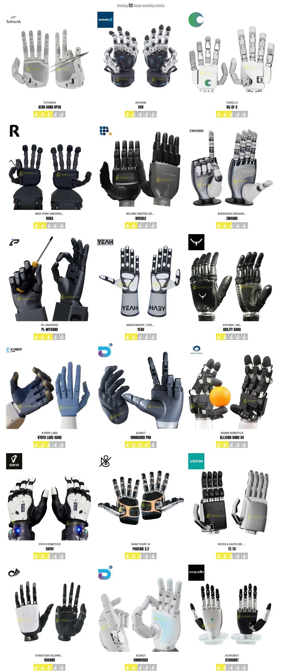 全球52款机器人灵巧手图鉴