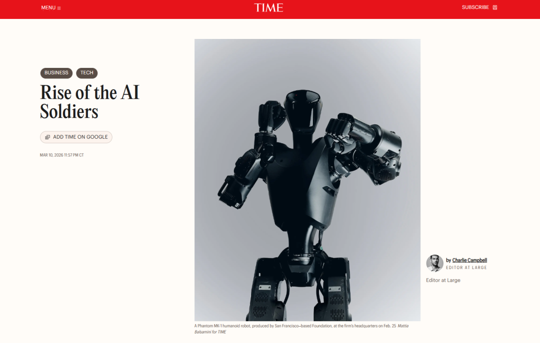 据《时代》杂志网站近日披露,今年2月,美国Foundation公司的两台Phantom MK-1人形机器人被悄然部署至乌克兰前线。这是公开记录中,人形机器人首次以官方身份介入现代战争的实际作战环境。